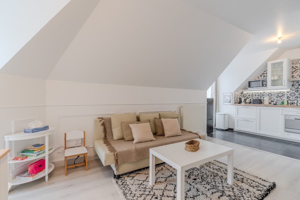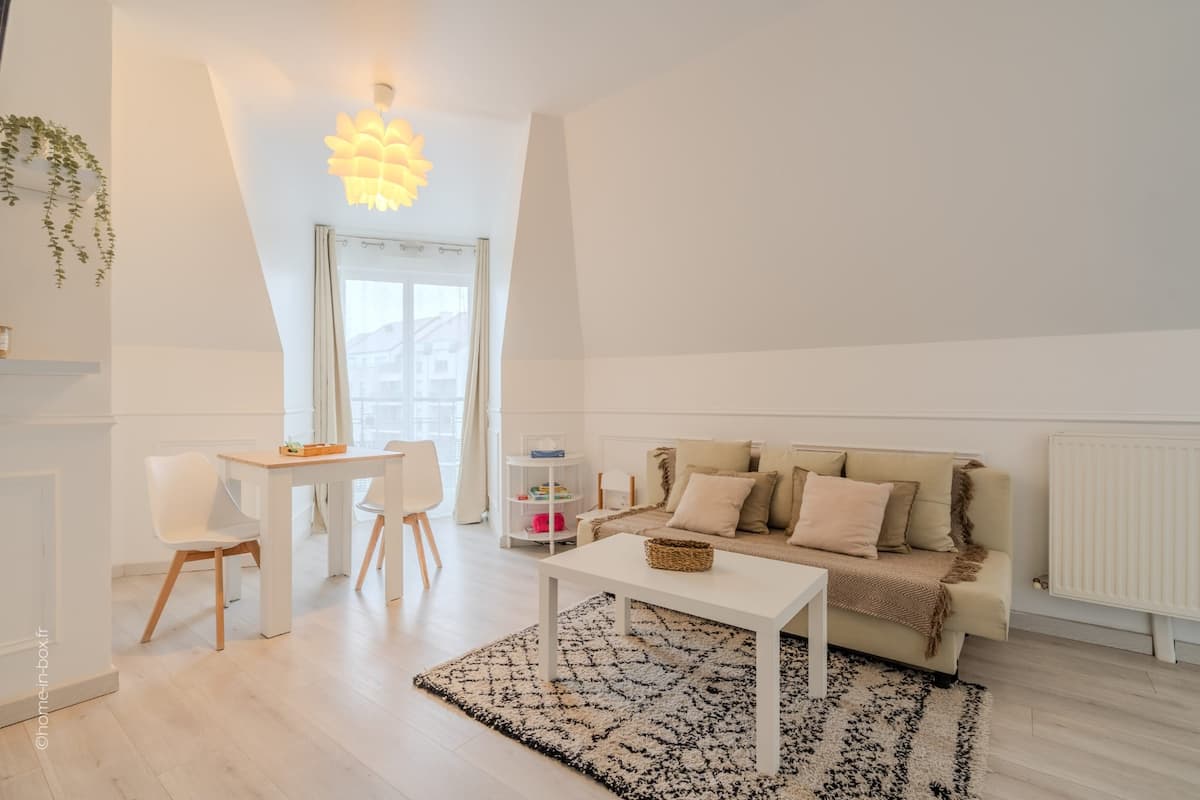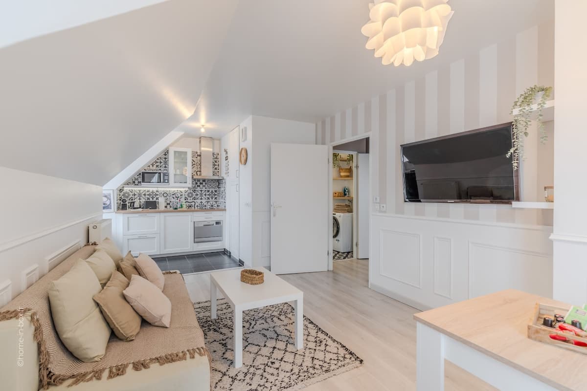 Le logement était très agréable et l'emplacement très bien pour des excursions à Paris ou à Disney Land. Attention au parking souterrain. Elle est assez étroite ; selon le véhicule, elle peut également être trop petite et trop basse (hauteur : 1,90 m) Nous nous sommes sentis très à l'aise